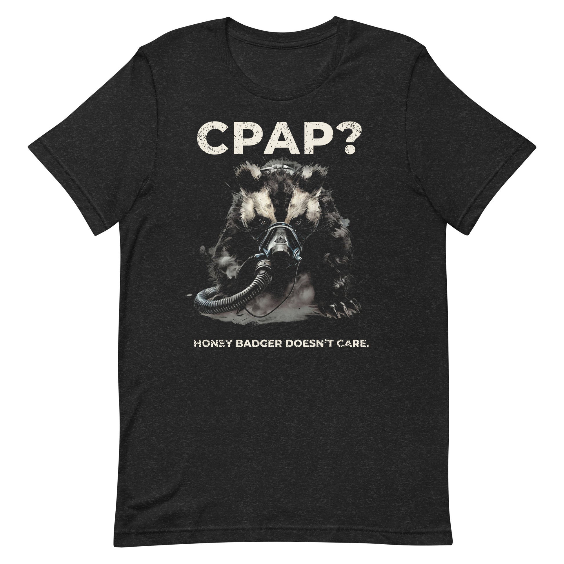 CPAP? HONEY BADGER DOESN'T CARE., Honey Badger wearing CPAP, CPAP, Animals, Sleep Apnea, Graphic Tee Shirt, Black